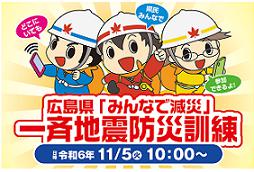 - 11月5日(火)は、広島県 「みんなで減災」一斉地震防災訓練!!